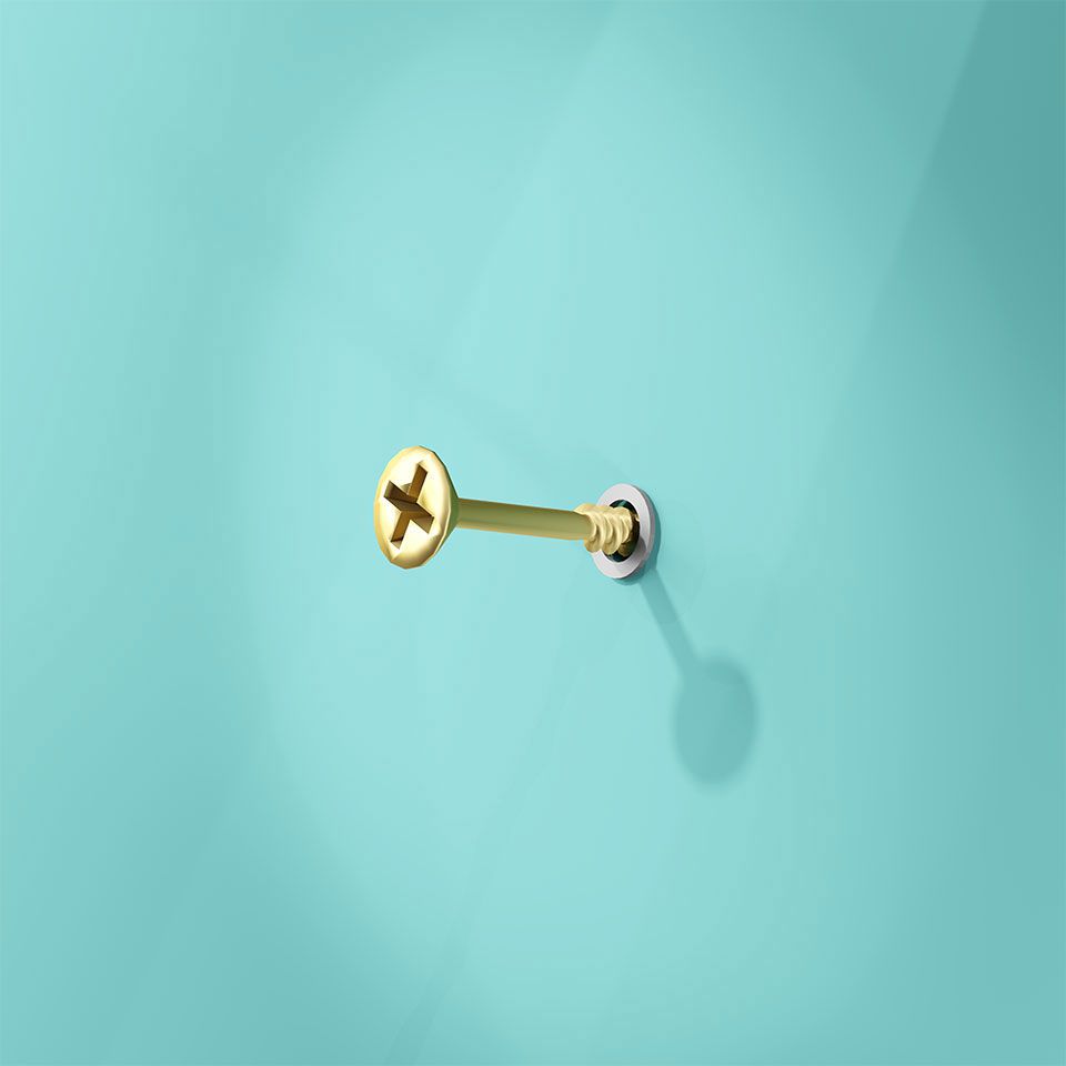 Dafür wird ellipsi® über den Schaft einer Senkkopfschraube geführt und mit dieser danach in der gewünschten Stellung mittels Dübel an der Wand fixiert. Durch Lockern der Schraube, Änderung der Stellung und erneutes Fixieren der Schraube kann ellipsi® stufenlos positioniert werden. So lassen sich Bild gerade aufhängen — einfach, flexibel und gerade.
